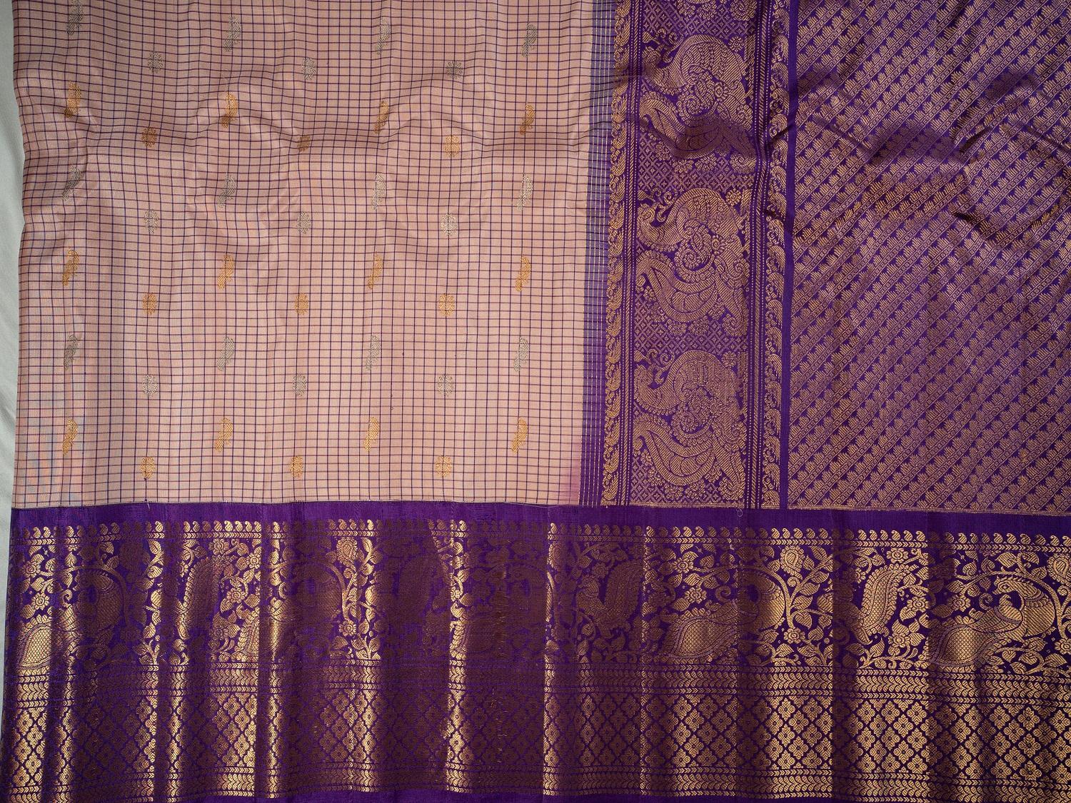 BEIGE WITH CHECKS AND PURPLE BORDER COMBINATION GADWAL PATTU