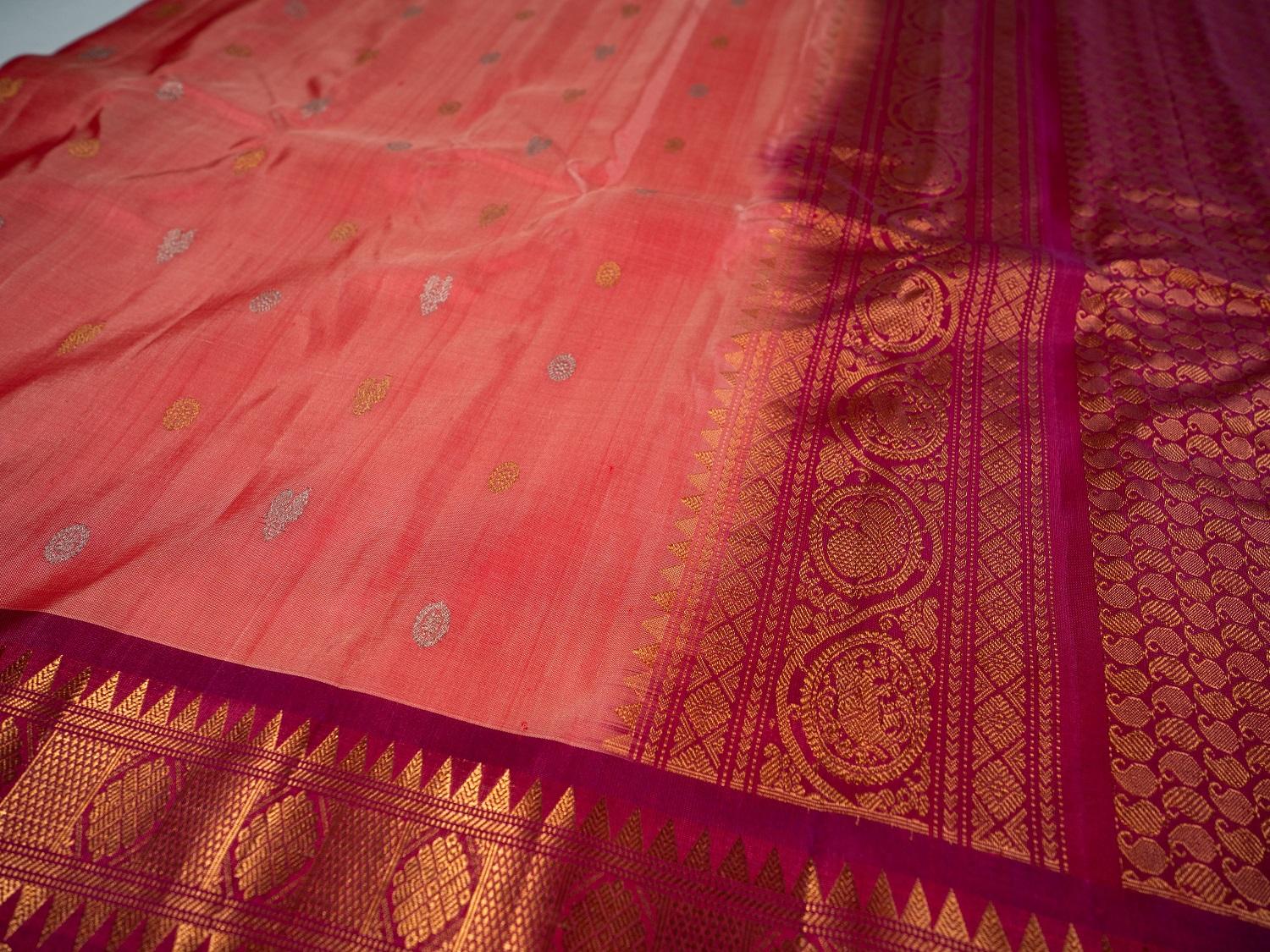 CROSSANDRA WITH PINK BORDER COMBINATION GADWAL PATTU