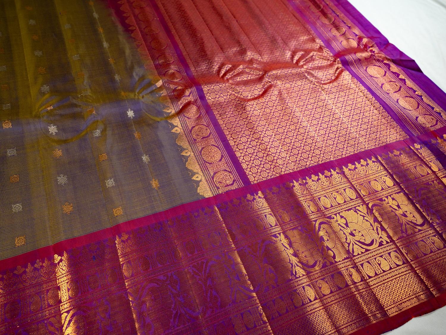 GRAY WITH PURPLE BORDER COMBINATION GADWAL PATTU