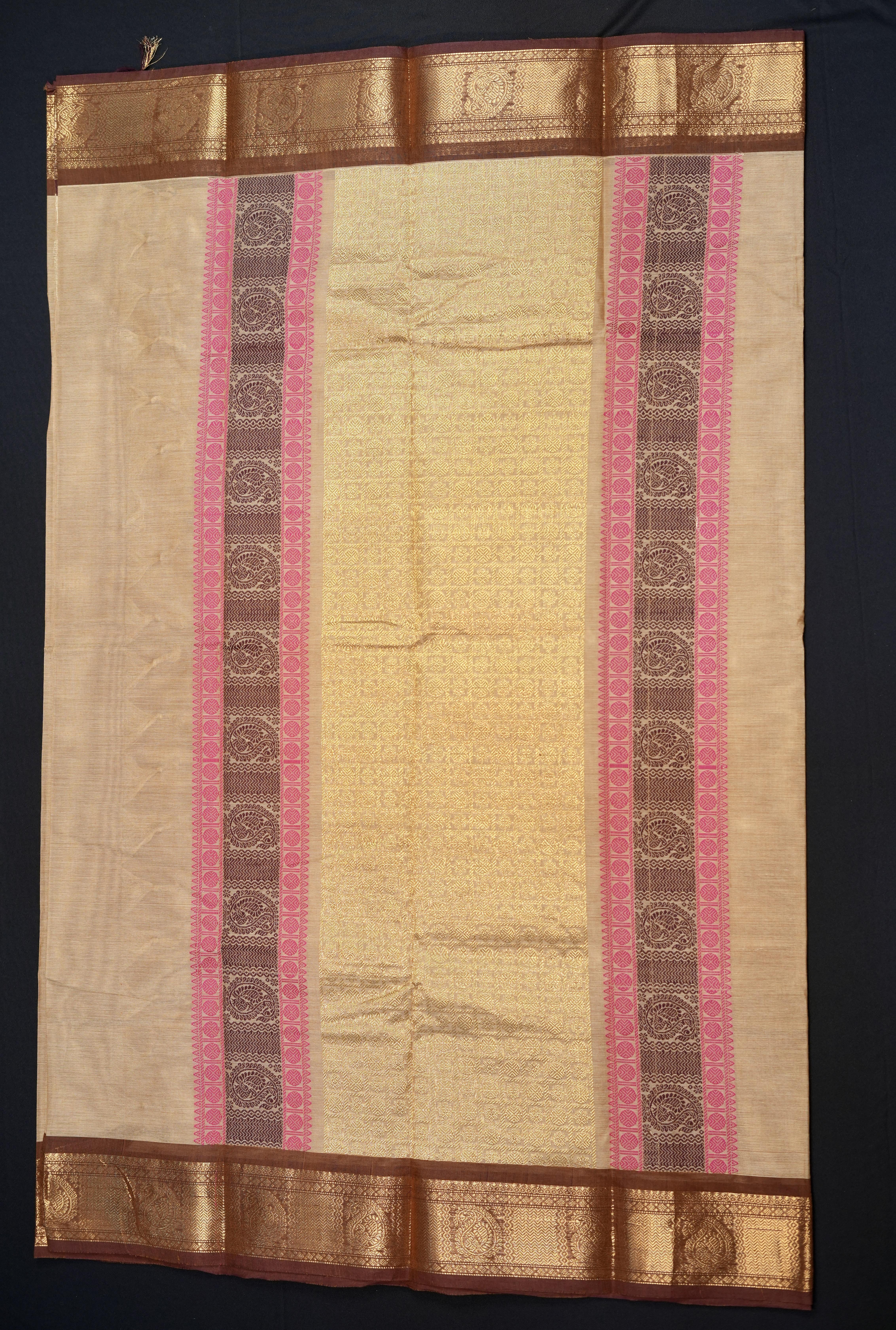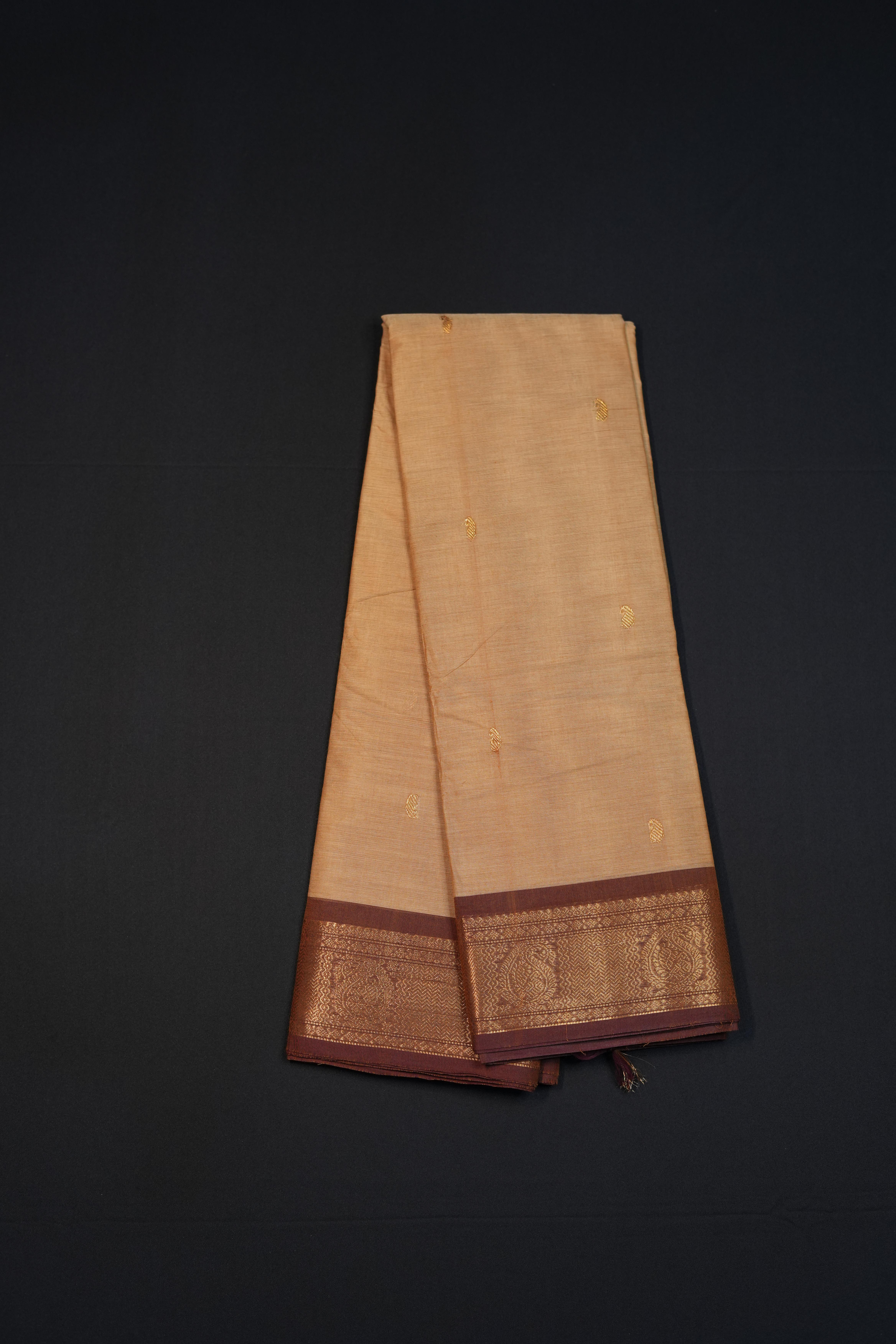 Handwoven Beige Cotton Saree