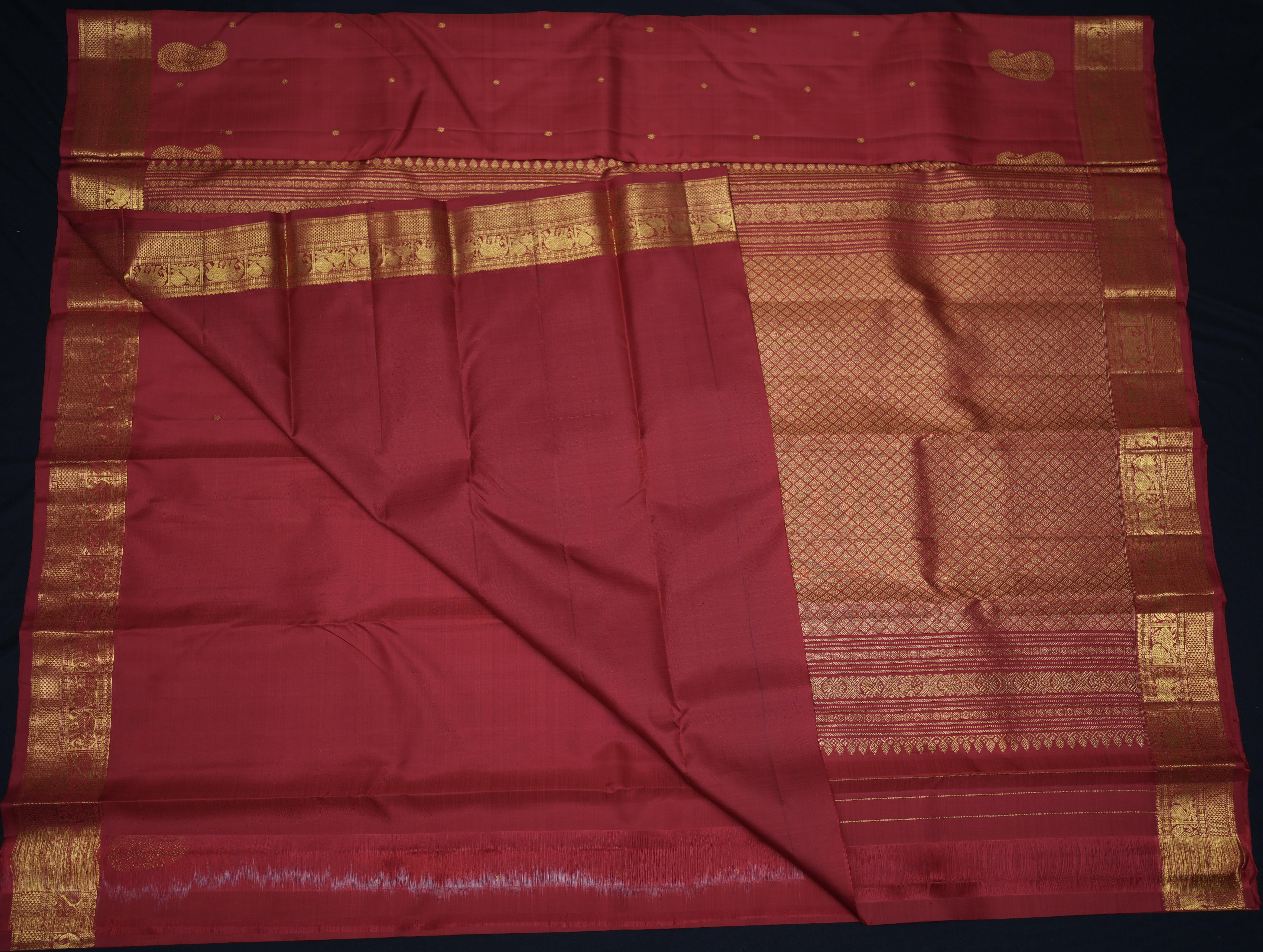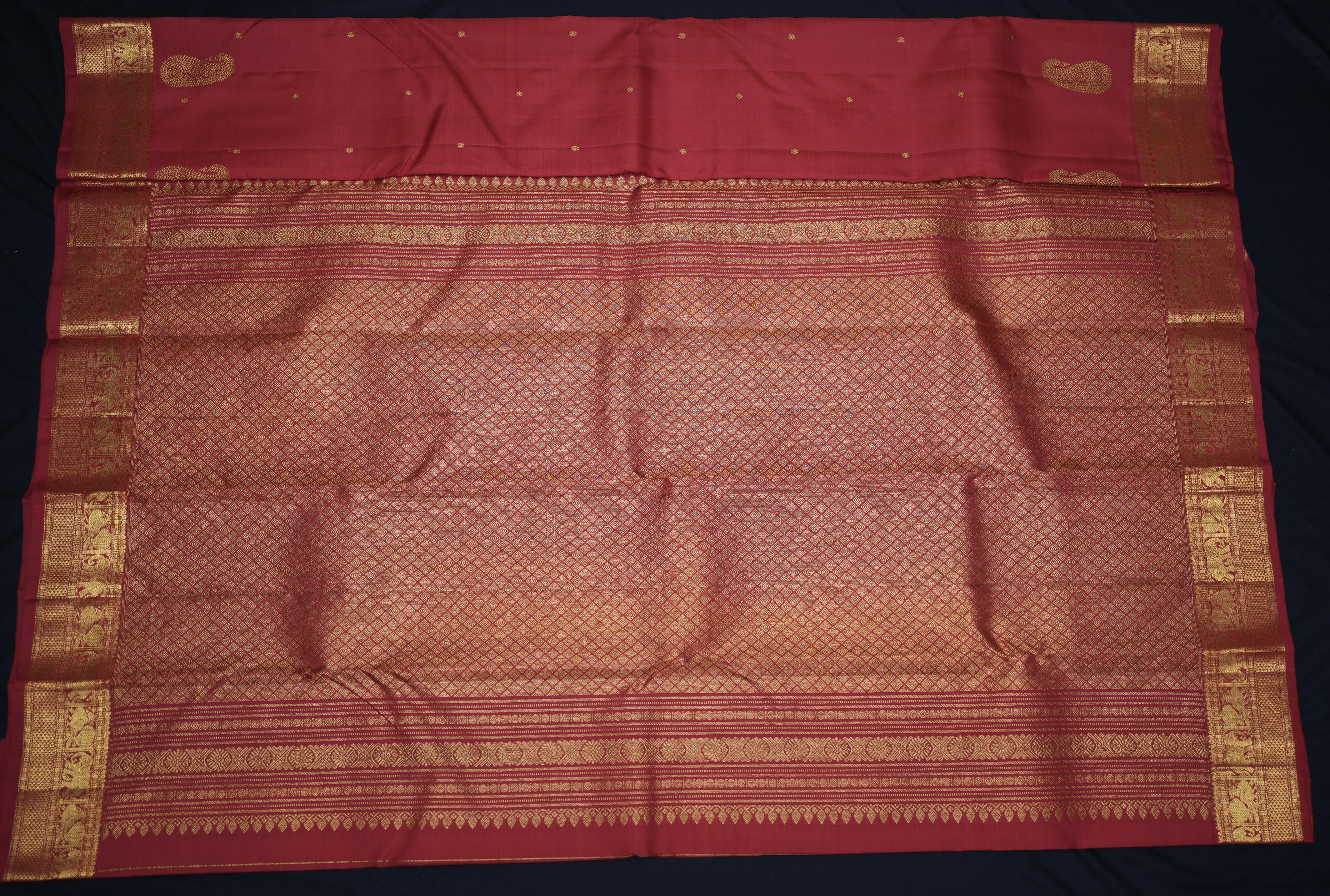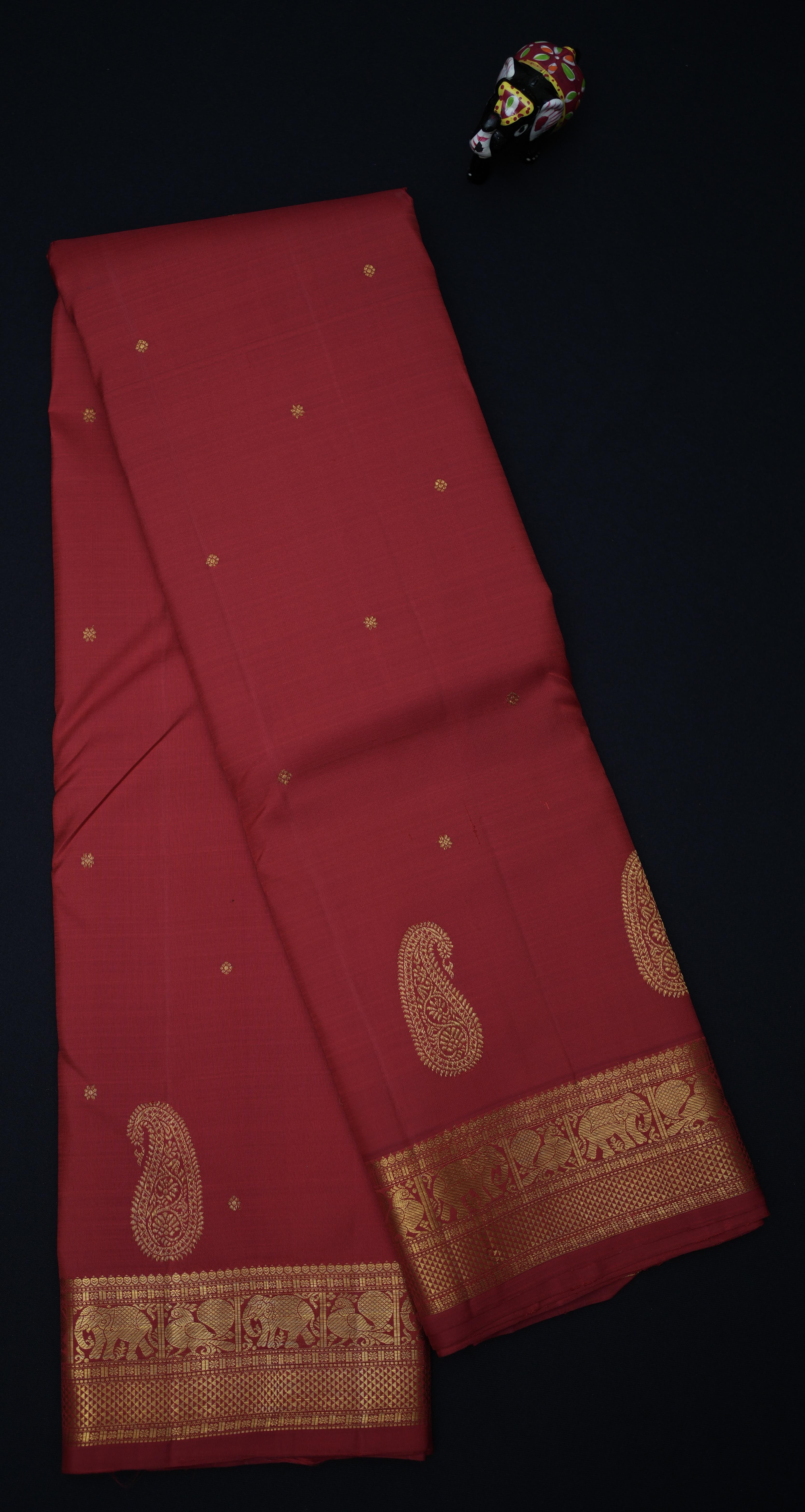 Add a touch of elegance to your wardrobe with this Kanchipuram Silk Butta red Saree. The beautiful red hue and intricate design make it perfect for any occasion. Made from high-quality silk, this saree is comfortable to wear and drapes beautifully. Pair it with statement jewelry to complete your look.