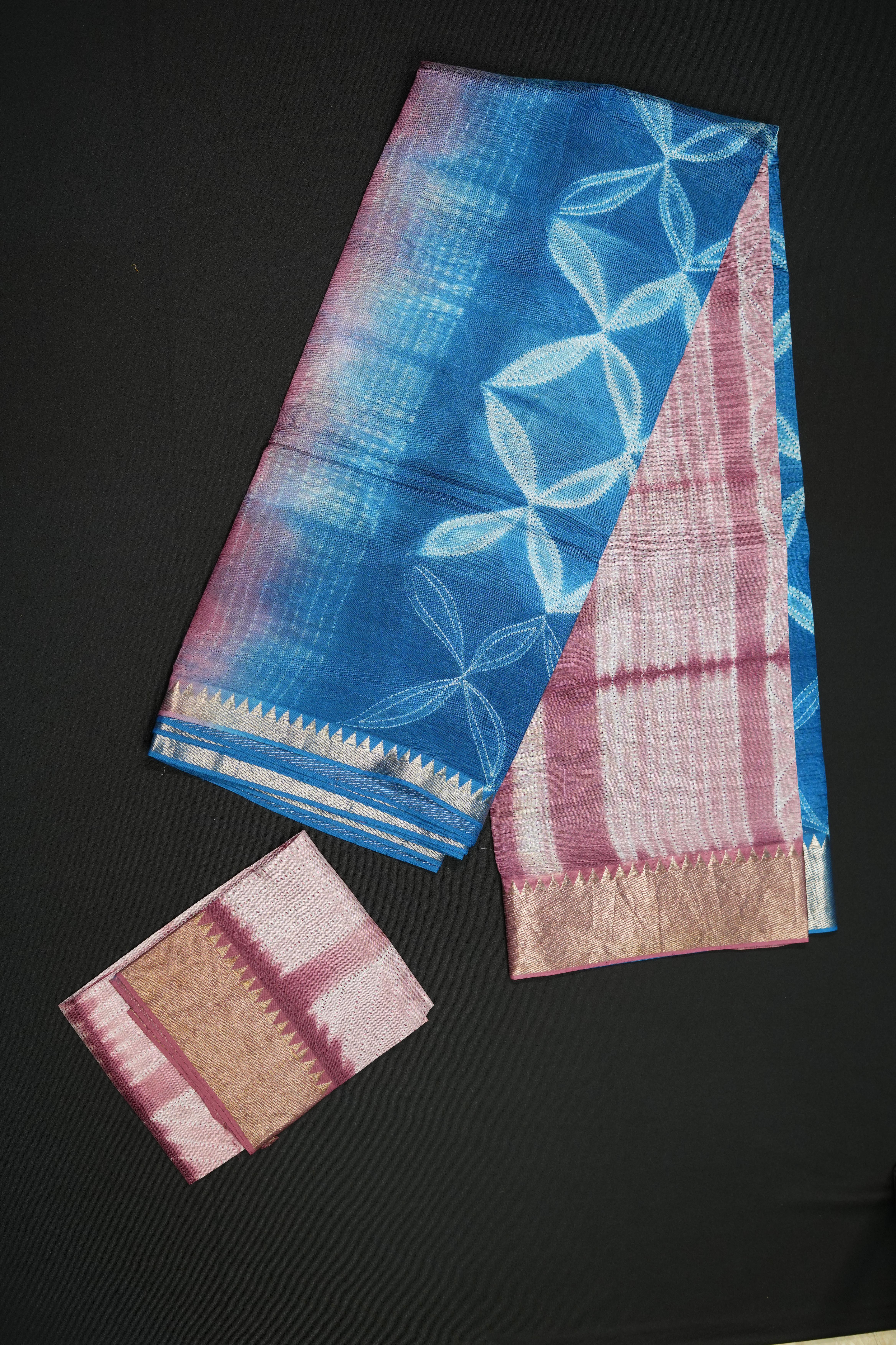 Mangalagiri Bandhini Pink and Blue Saree