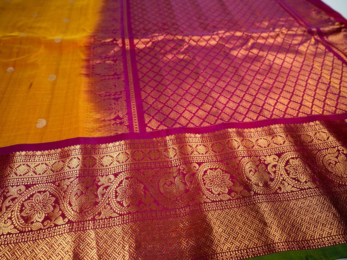 MUSTARD YELLOW WITH MAROON RED BORDER GADWAL PATTU