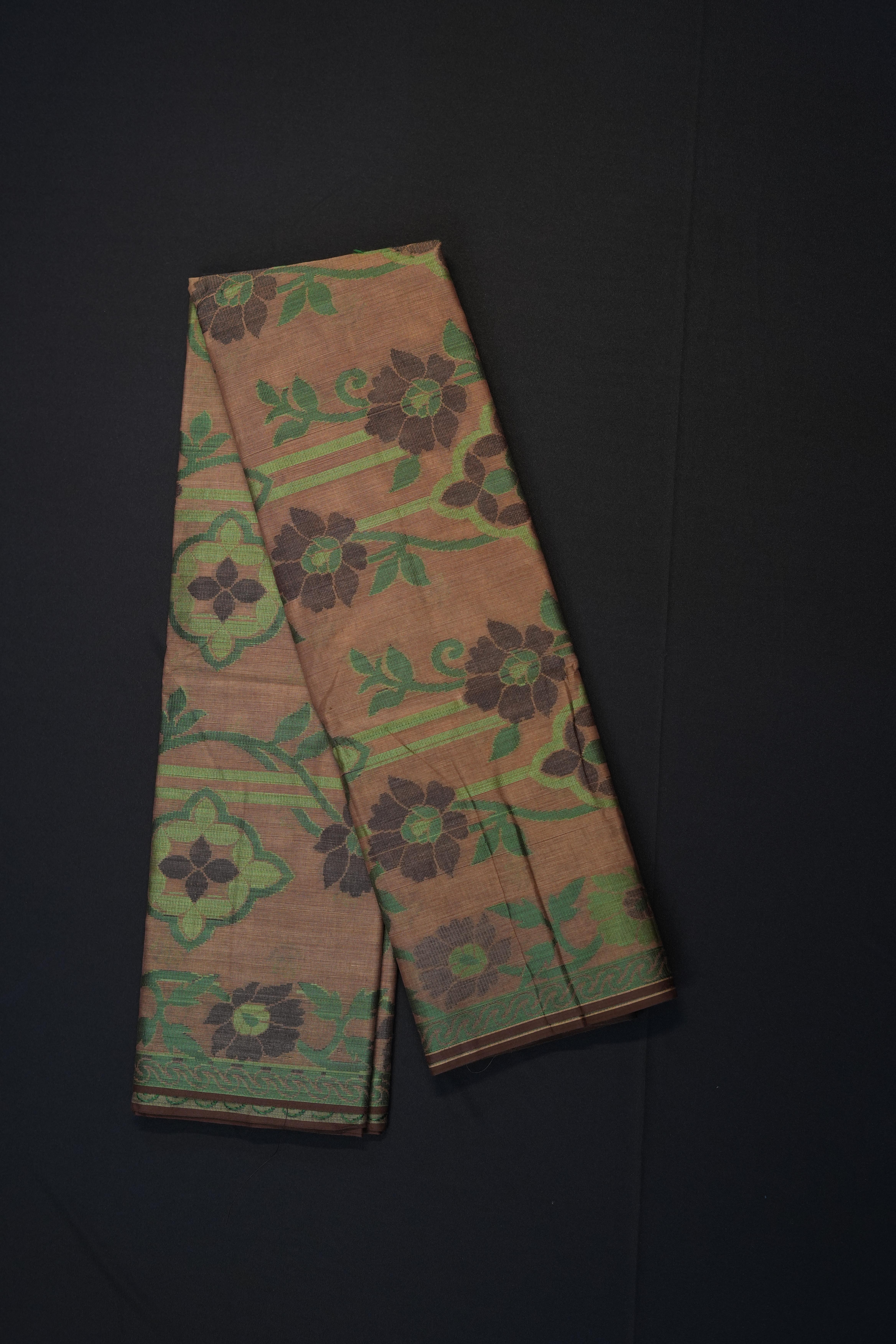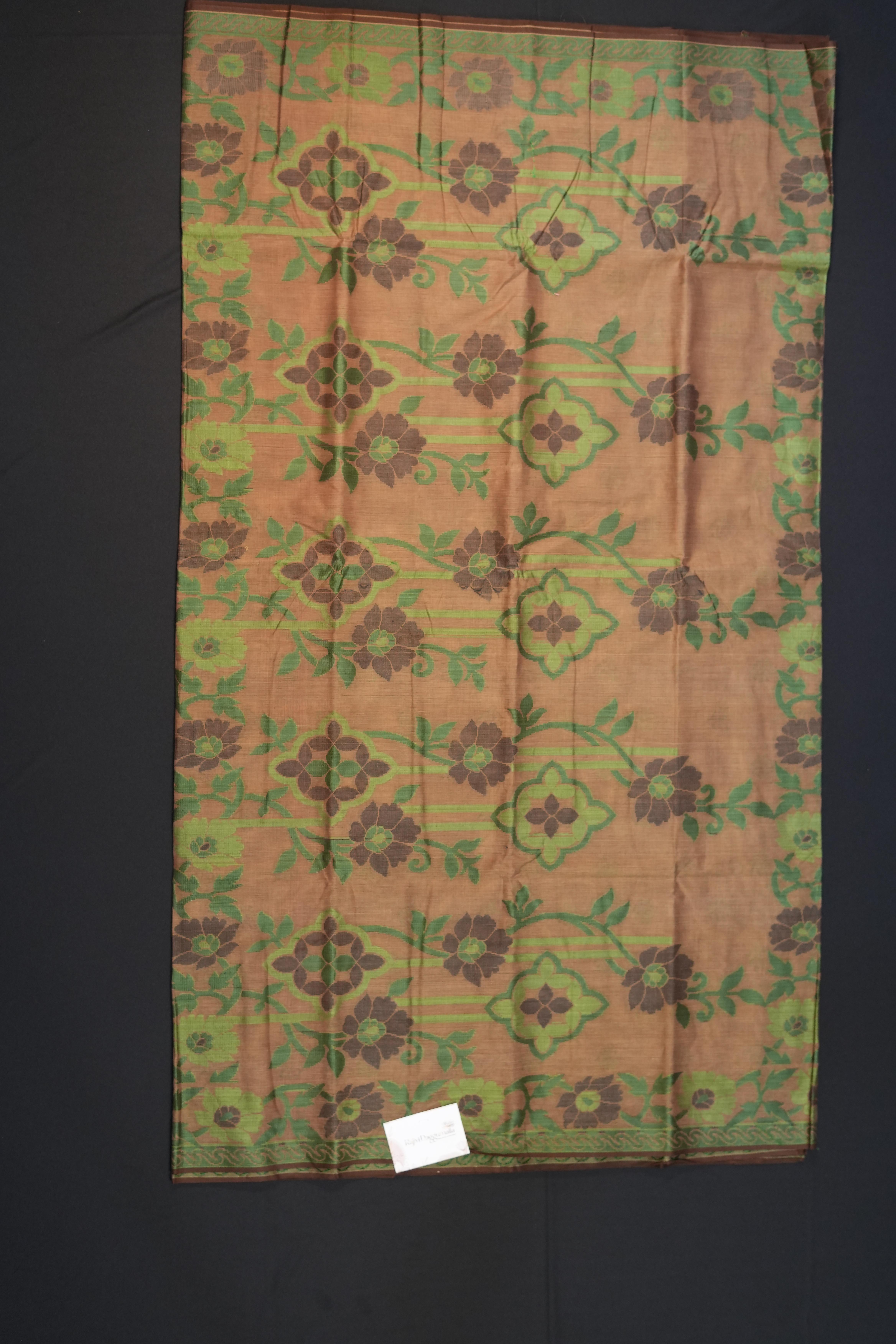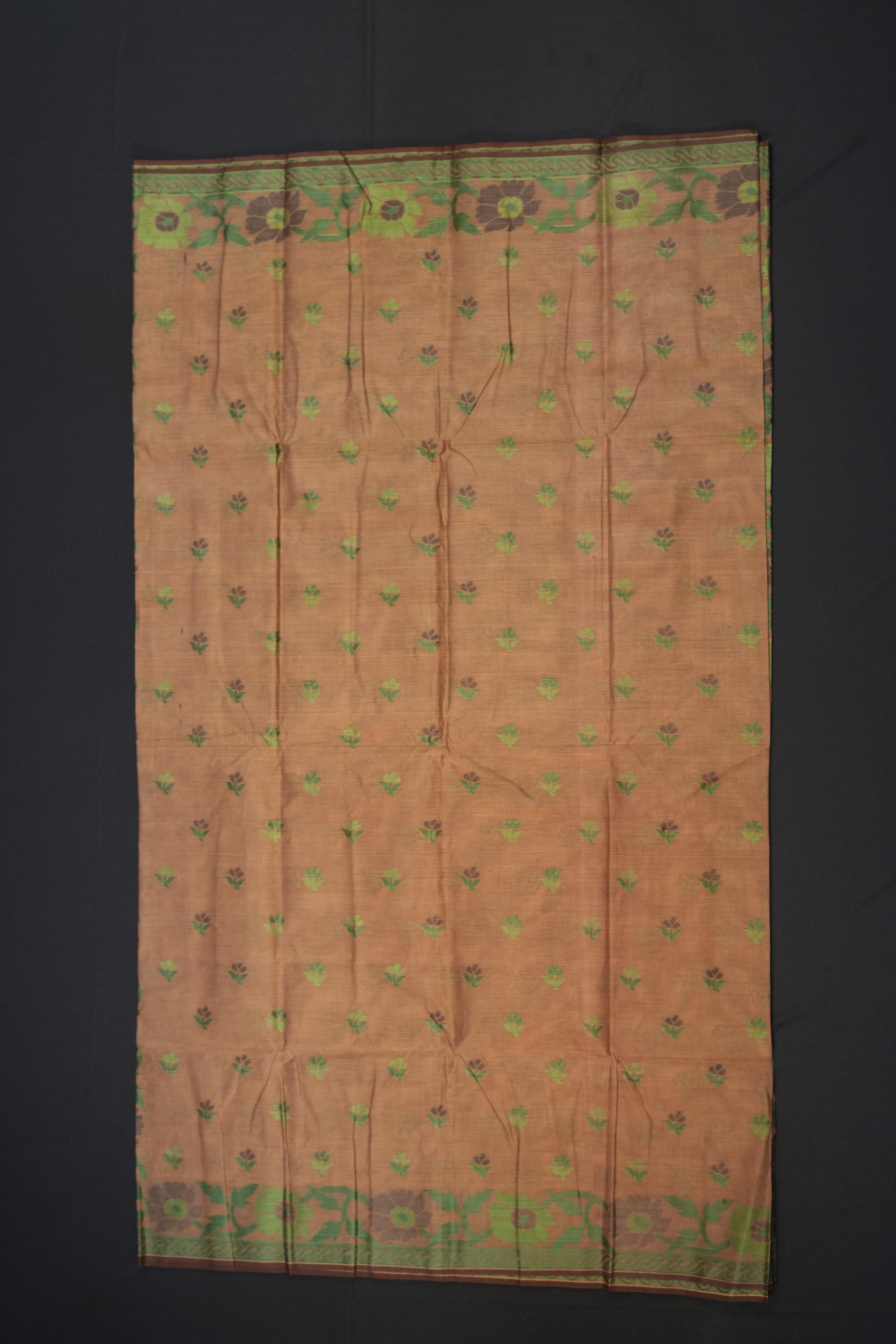 The saree features floral butta, giving it a timeless appeal with fine craftsmanship. Border: The self green floral small border enhances the look. Pallu: The pallu is designed with self floral Jamdani motifs, adding a traditional touch to the entire ensemble.