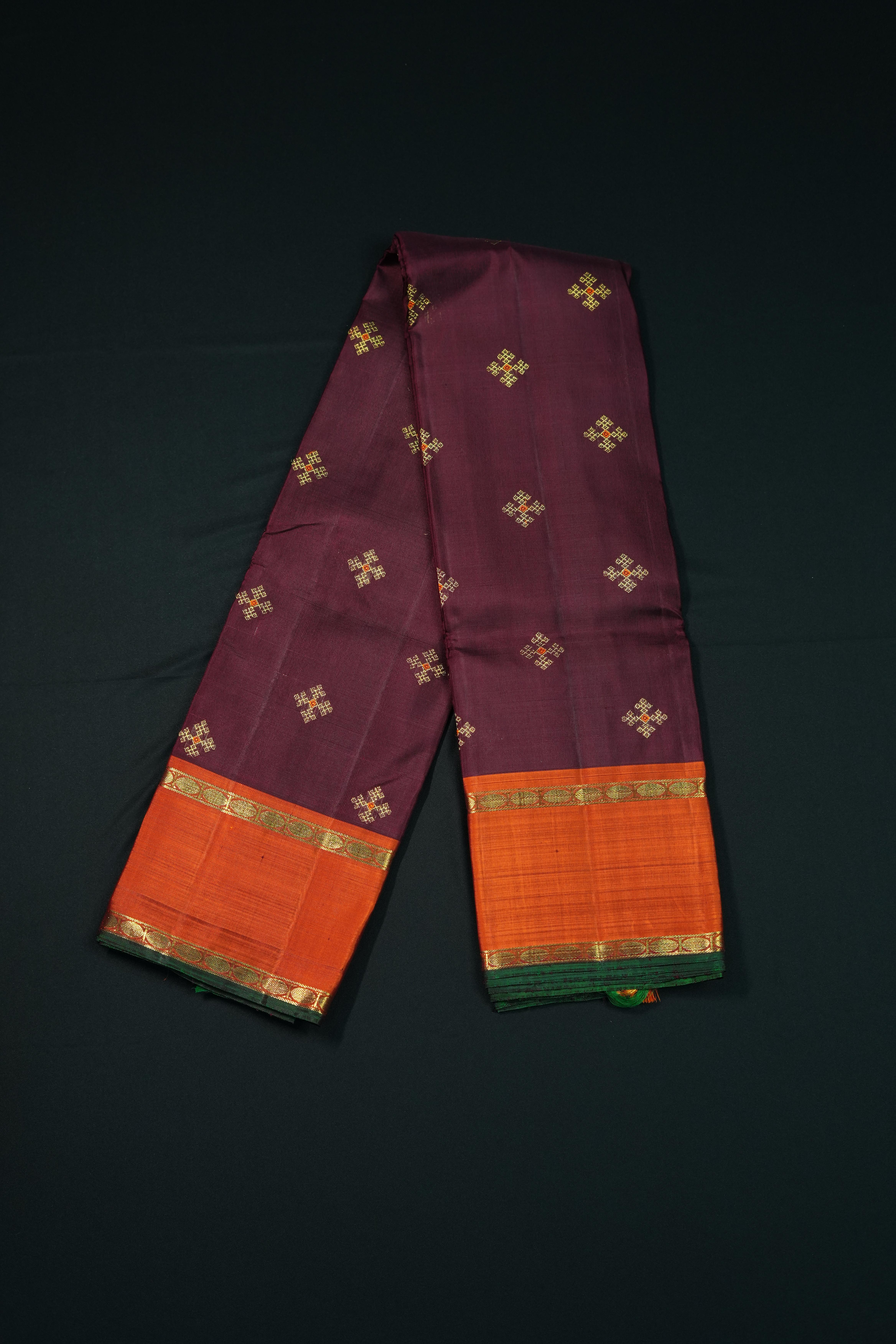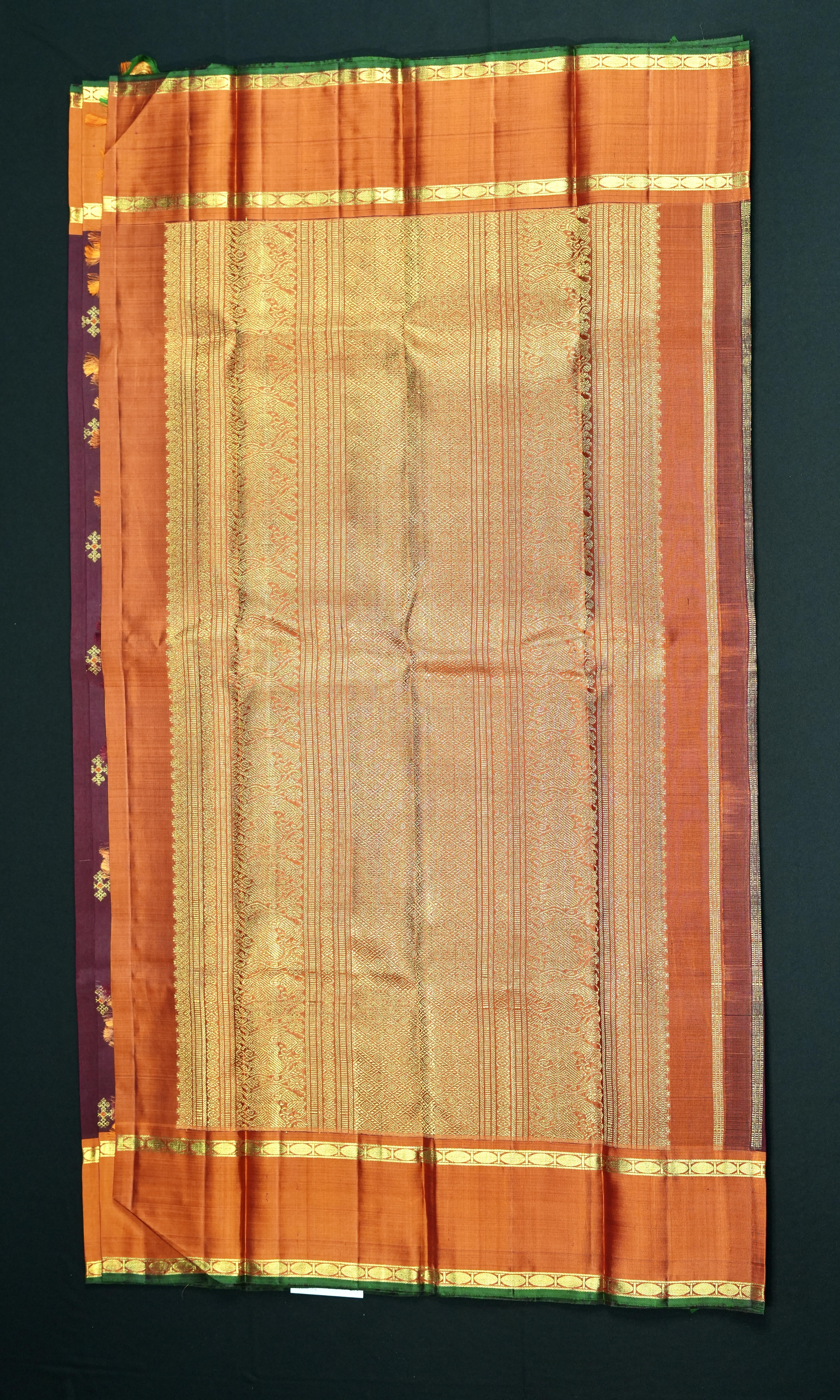 The traditional gap border Kanjivarams, with a intricate zari pallu
