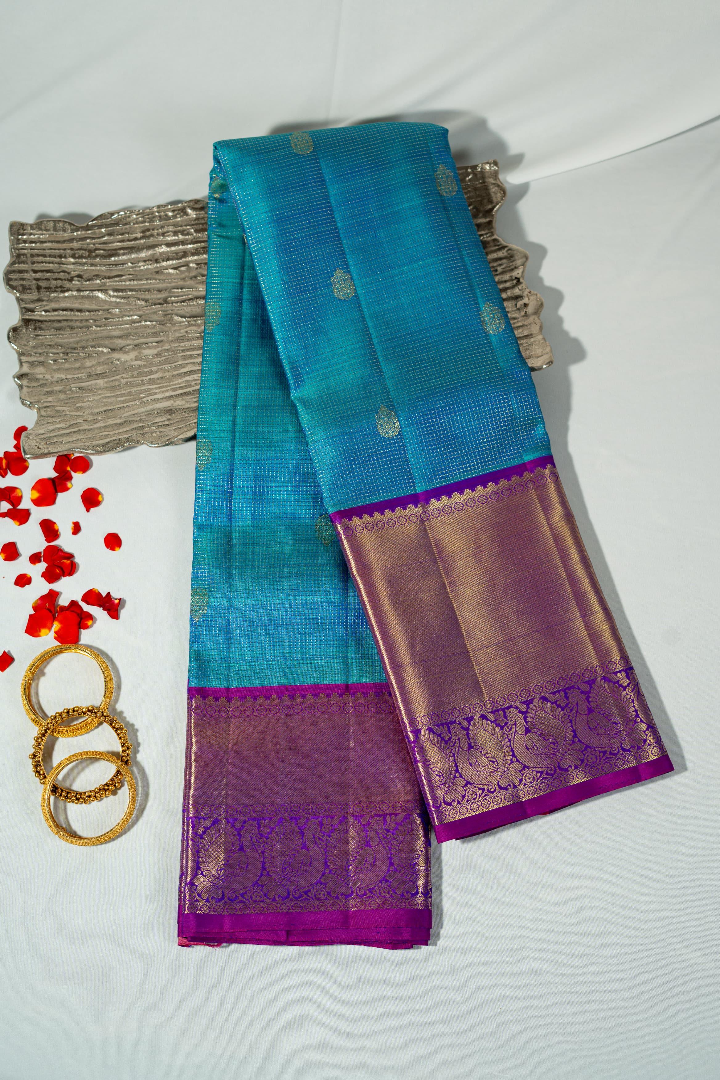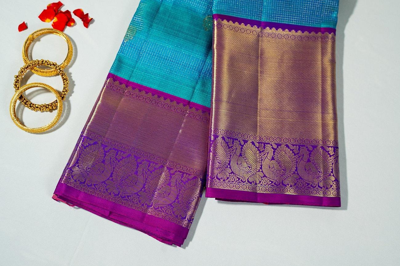 Copper Sulphate Blue Checks with Purple Border