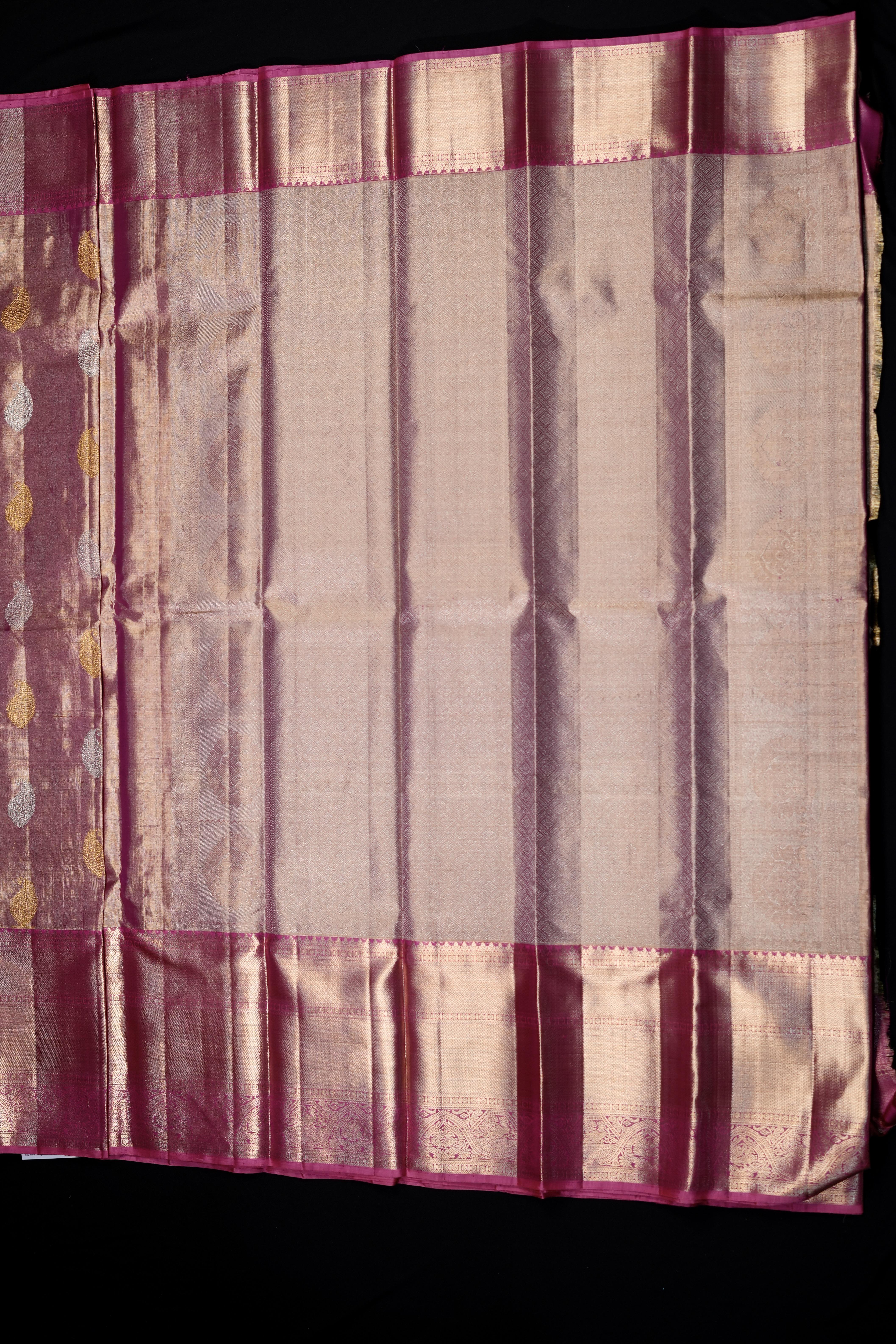 Border: The saree is framed with a self silver zari big border, adding a touch of grandeur.