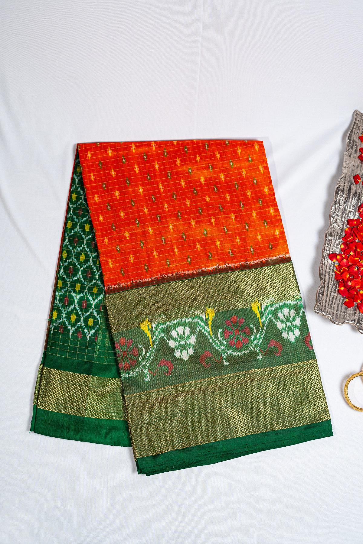 Embrace timeless charm with our Pochampally Silk orange Saree.  Perfect for adding vibrance to your wardrobe.